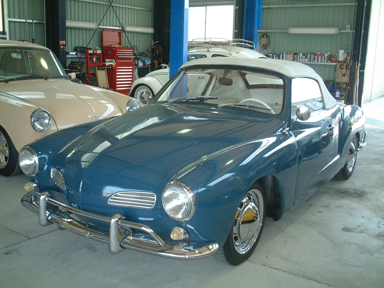 `68 KARMANN GHIA CONV \1,390,000- 車検2年 NEWペイント NEWインテリア エンジン1600cc 12v Fr.Rrローダウン Wクワイエットマフラー 356タイプクロームホイール ビニールトップ *コンディションの良いK.GHIAのコンバーチブルも少なくなってきました。